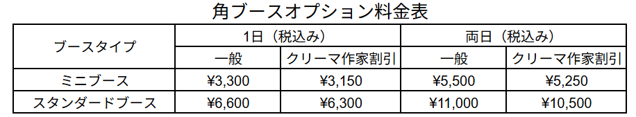 角ブースオプション料金